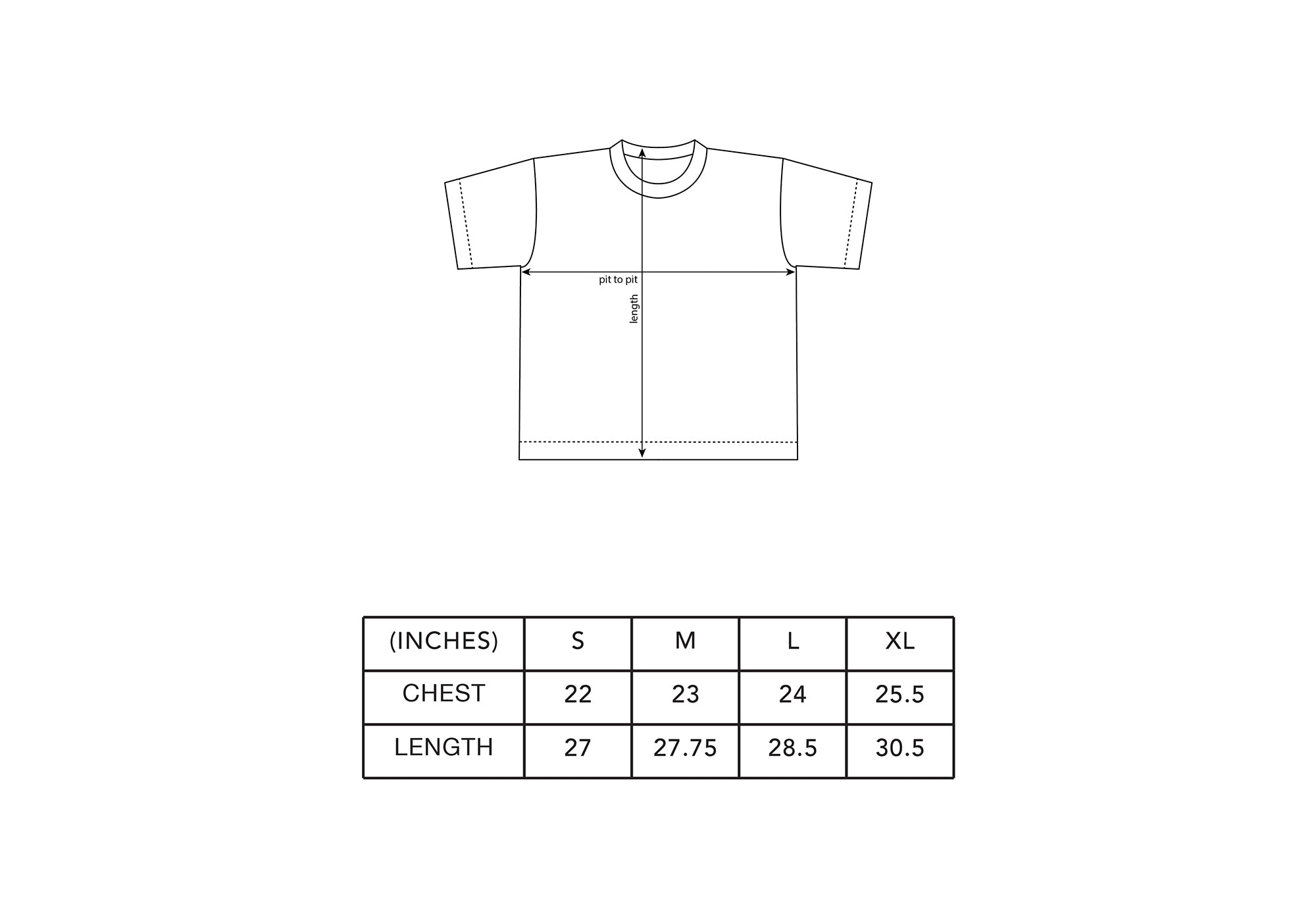 Our t-shirts offer a true-to-size fit with a slightly cropped length and modern streetwear silhouette, so you can confidently order your usual size. Crafted from heavyweight, soft fabric, they provide everyday comfort without feeling bulky—perfect for effortless layering or as a statement piece on its own.